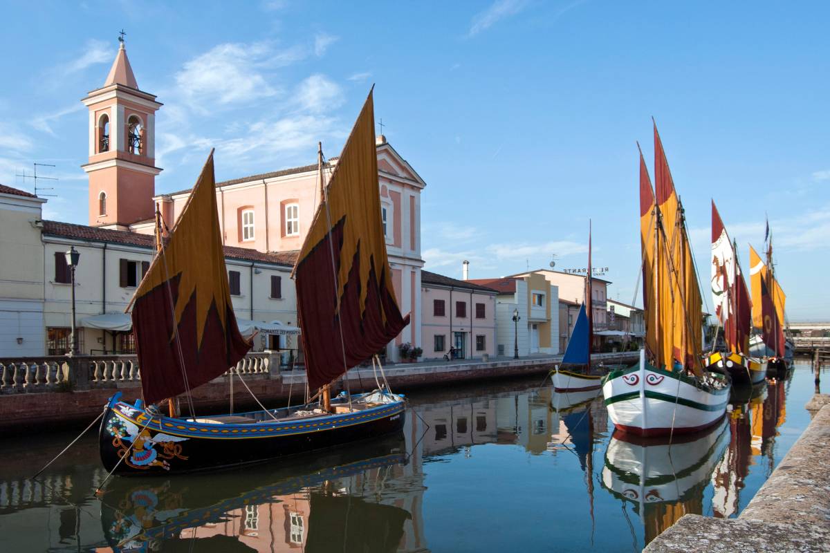 Le antiche imbarcazioni, con le loro vele colorate, raccontano la storia della pesca e della tradizione marinara romagnola.